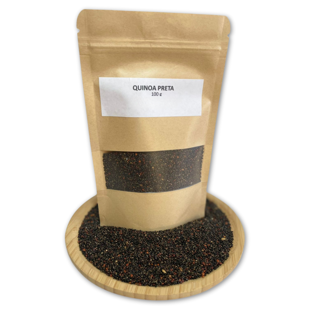 A semente de quinoa preta é um pseudocereal originário da América do Sul, rico em proteínas, fibras, vitaminas e minerais, sendo também livre de glúten. É uma ótima opção para fortalecer os músculos, ajudar na saciedade, melhorar a saúde intestinal e é versátil para consumo em diversas receitas, como sopas, saladas, bolos e para substituir o arroz.